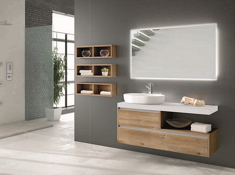 . 1 Modulo soporte lavabo suspendido 60×45 H:25 1C, Cartagena, tirador EV.